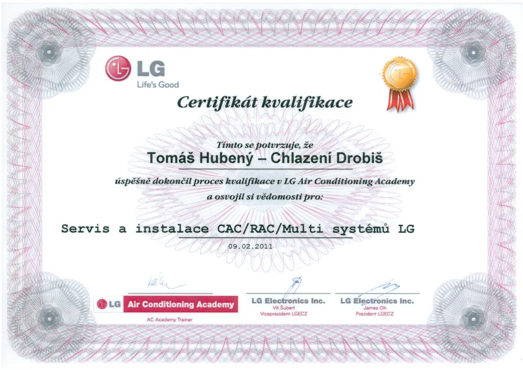 Náš tým je pravidelně školen a certifikován přímo u výrobců. Jsme autorizovanými specialisty pro montáž a servis systémů LG.